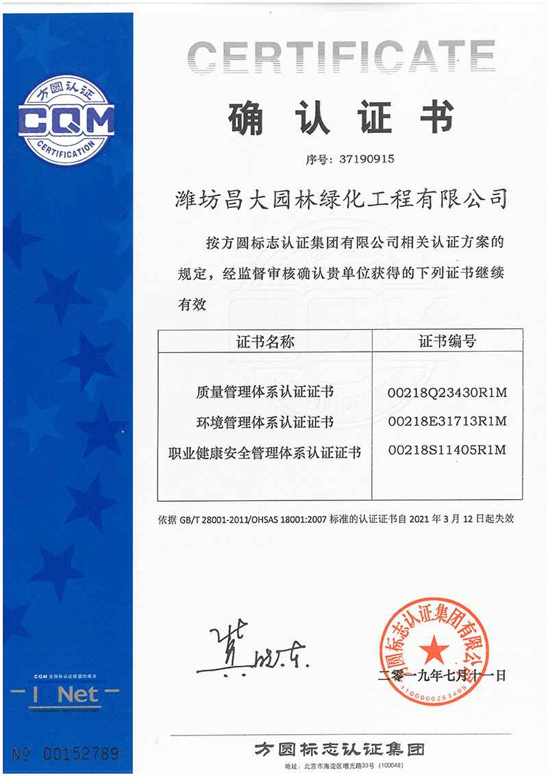 體系認證證書