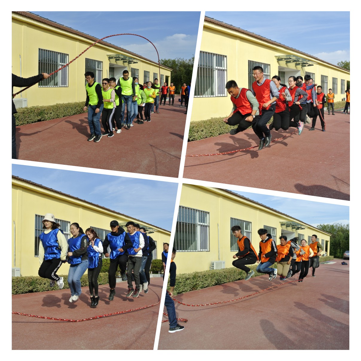本次趣味運(yùn)動(dòng)會(huì)設(shè)有跳大繩、穿越電網(wǎng)、車輪滾滾、合力建塔、袋鼠跳跳、信任天梯、拔河七個(gè)比賽項(xiàng)目。參賽隊(duì)員全部打亂順序混編成四組,并推選出一名隊(duì)長(zhǎng)。“跳大繩”作為傳統(tǒng)比賽項(xiàng)目?jī)?yōu)先登場(chǎng),由兩名隊(duì)員搖繩把握節(jié)奏,跳繩隊(duì)員快慢有序穿梭于繩索之間,隊(duì)長(zhǎng)統(tǒng)一指揮、技術(shù)協(xié)作奠定了取勝的關(guān)鍵。“穿越電網(wǎng)”項(xiàng)目發(fā)揮的是隊(duì)員們?nèi)翰呷椭腔哿α康娜诤?,比賽異常激烈。?ldquo;車輪滾滾”項(xiàng)目環(huán)節(jié)中,各隊(duì)隊(duì)員們齊心協(xié)力,保持口令一致、步調(diào)一致、節(jié)奏一致,穩(wěn)步前行地沖向終點(diǎn)。合力建塔、袋鼠跳跳、信任天梯、拔河等項(xiàng)目也在各隊(duì)的拼搏和歡快中逐一完賽。
