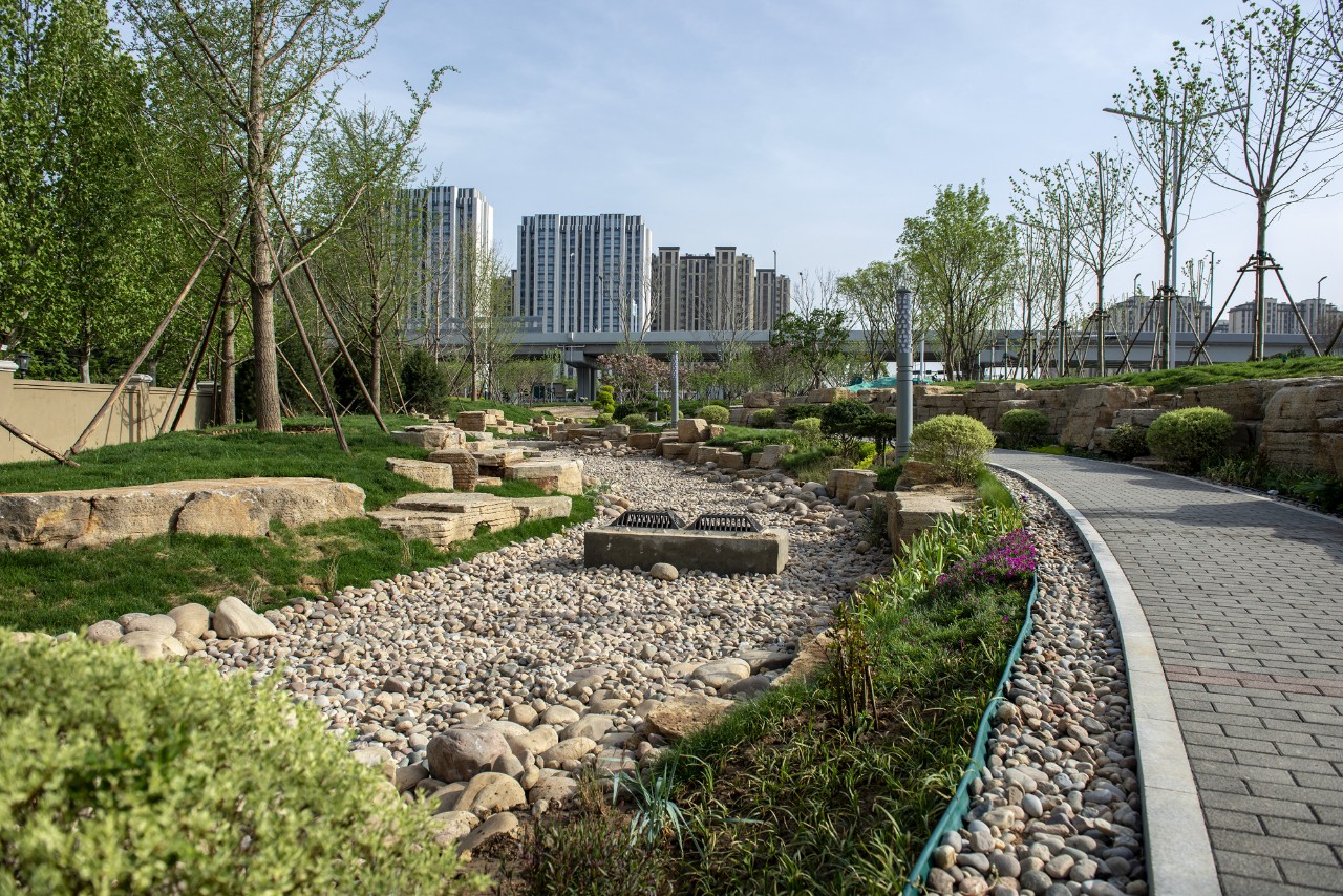 寶通街快速路景觀綠化作為濰坊市海綿城市示范建設(shè)重點(diǎn)項(xiàng)目,引領(lǐng)各方關(guān)注,對(duì)全市海綿城市系統(tǒng)化建設(shè)具有引領(lǐng)示范帶頭作用。昌大園林公司和項(xiàng)目部充分貫徹設(shè)計(jì)理念,精細(xì)化施工,把海綿城市的理念貫徹到每一個(gè)施工細(xì)節(jié),打造出采用陶瓷透水磚園路鋪裝、下沉式綠地、雨水花園、渤海路節(jié)點(diǎn)旱溪等豐富的生態(tài)環(huán)境,再精心配置不同種類、色彩、造型的景觀小品及苗木,讓道路沿線綠化景觀形成豐富的節(jié)奏和層次變化,使寶通街快速路綠化成為既是海綿又是風(fēng)景的特色景觀。